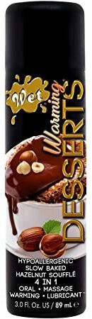 Съедобный лубрикант на водной основе с уникальным вкусом суфле и лесного ореха.