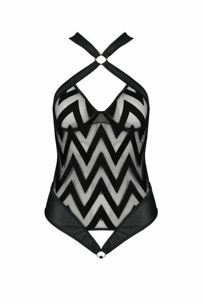 Сетчатый боди с халтером и ритмичным рисунком Hima Body black L/XL - Passion: