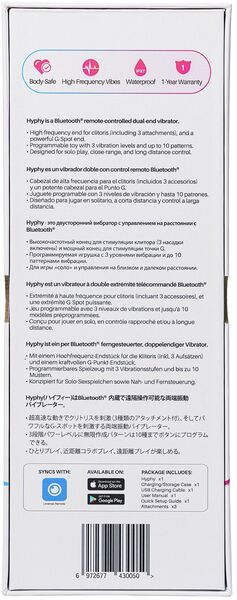 Оргазм гарантирован! Предлагаем купить двусторонний смарт вибратор Lovense Hyphy — этот универсальный гаджет не пропустит ни одну эрогенную зону. Одна сторона — тонкий кончик с высокочастотной вибрацией для сводящей с ума стимуляции клитора или сосков. Вторая сторона — твердый ствол со специальной выпуклостью для стимуляции точки G. Каждая часть управляется отдельно и может вибрировать в 10 режимах. Вибратор синхронизируется с приложением, где можно создавать свои режимы, устанавливать будильник, передавать управление партнеру на любом расстоянии и многое другое. В комплекте — крутой кейс - зарядная станция!
