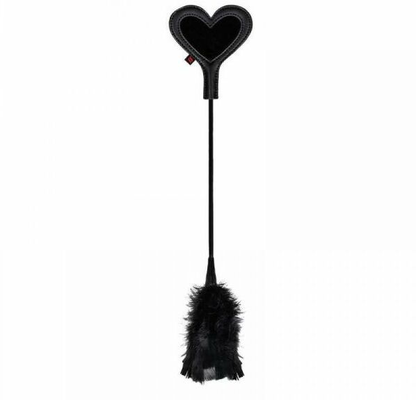 С одной стороны стека расположена плотная шлепалка в виде сердечка, а с другой кокетливый хвостик из нежных перьев. Сила шлепка достаточно невелика, но воздействие хлесткое и резкое. Поэтому стек идеально подходит для сексуальных забав, в которых вам потребуется наказать партнера.