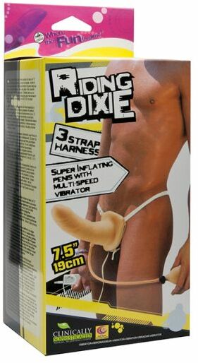 Мультискоростной страпон с грушей для надува и клапаном для сброса давления.