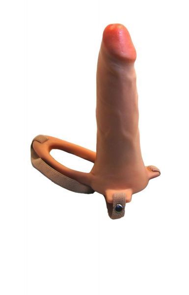 Мужской пристежной фаллопротез с внутренним туннелем для пениса. Упакован в пленку и картонную коробку.