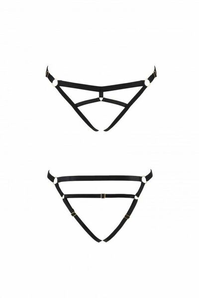 Трусики из переплетающихся эластичных ремешков — то, что нужно, чтобы соблазнять, увлекать и волновать. Самое главное — их можно не снимать во время самой горячей близости, ведь они не помешают даже самой откровенной ласке! Впрочем, можно надевать их на одежду, создавая неповторимые образы. Не забудьте отрегулировать ремни по фигуре для наилучшей посадки. Идеально сочетаются с портупеей KELIS BRA.