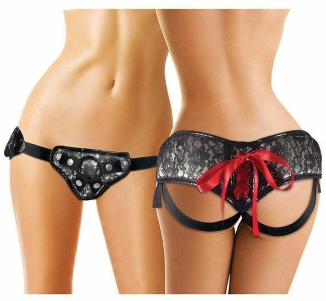 В нашем магазине вы можете купить трусы для страпона Platinum Lace Corset Strap-On - роскошную конструкцию с кружевами и атласной шнуровкой, а также тремя сменными кольцами для крепления фаллоимитатора разного диаметра.