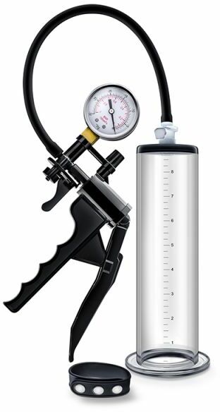 - Premium penis pump system with silicone cock strap.