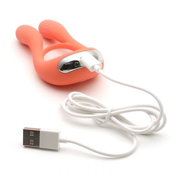 • гибкие кончики с дополнительным рельефом и двумя моторчиками (по одному в каждом) будут с двух сторон ласкать клитор, вознося партнершу на вершины удовольствия;