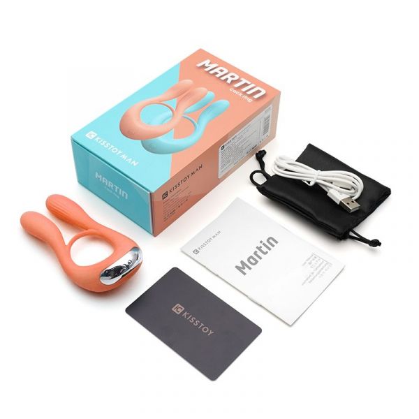 —Вибратор для пар KisToy Martin Orange, два мотора, крепление на член, диаметр 32мм