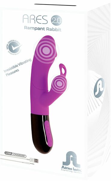 Уникальный вибратор с петелькой теперь на аккумуляторах! Купить вибратор-кролик Adrien Lastic Ares 2.0 с петелькой для пальца, перезаряжаемый — идеальное решение, если вы цените одновременную стимуляцию клитора и точки G и любите поэкспериментировать в паре. Он прекрасно подойдет и для соло использования, и, благодаря петельке, для парных игр. В вибраторе 2 мощных мотора, которые работают в 10 необычных режимах! Ствол вибратора гибкий и подстраивается под ваши особенности, чтобы удовлетворить желания каждой.