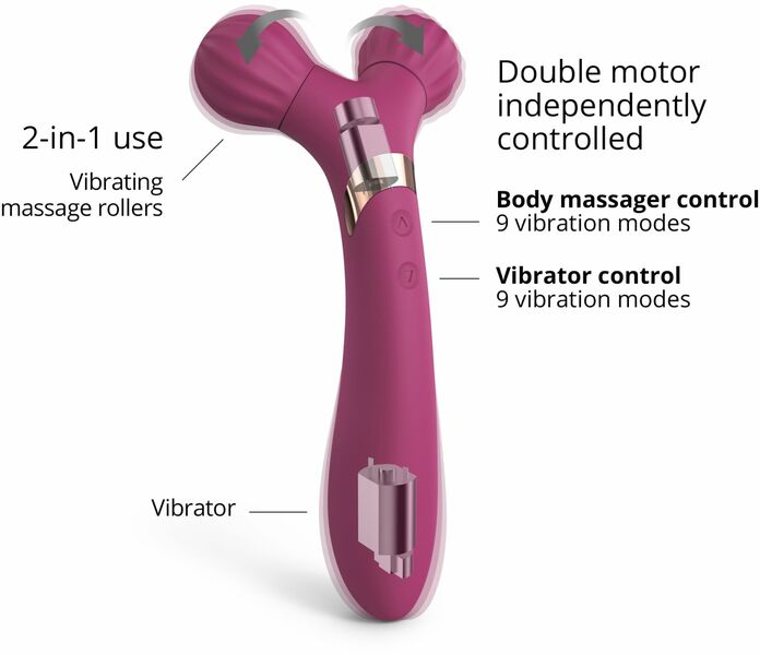 - 2 мотора — один в массажере, другой в вибраторе — управляются отдельно;