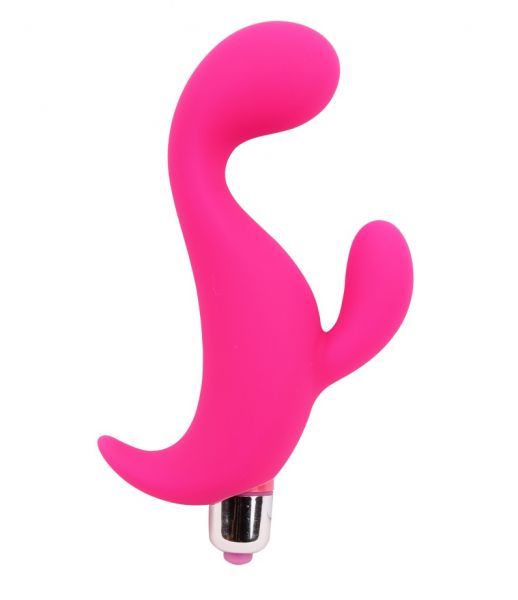 Мини вибратор для тройной стимуляции. Выполнен из 100% медицинского силикона. Подходит для стимуляции точки G, клиторальной и вагинальной стимуляции. Имеет 7 режимов вибрации. Водонепроницаемый, работает от батареек.