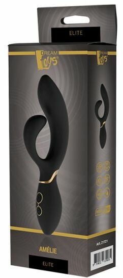 Коллекция Elite от Dream Toys - созданная дарить не только эротическое удовольствие и экстаз, но и визуальное удовлетворение.Вибратор Amélie Elite от Dream Toys - это двойной вибратор черного цвета со стильными золотыми вставками и довольно большой гибкой головкой. Два мощных мотора работают одновременно и обеспечивают 7 сильных и глубоких вибраций в трех скоростях. Гибкий и податливый вибратор-кролик подстроиться под все ваши интимные зоны, доставляя незабываемые удовольствия. Также вибратор может оставаться в согнутом положении. Благодаря водонепроницаемой защите (IPX7) это девайс будет радовать вас везде, где вы жаждете горячих волн возбуждения. Его также легко очистить водой с мылом или дезинфицирующим средством для чистки игрушек.Вибратор Amélie заряжается с помощью прилагаемого USB-кабеля. Он изготовлен из пищевого силикона и ABS, водонепроницаем и безопасен для тела, не содержит фталатов и латекса. Управление может быть выполнено с помощью 2 кнопок на основании вибратора: верхняя кнопка для включения / выключения вибратора, нижняя кнопка для переключения программ вибрацииОсобенности:Гибкий и упругий кролик, удерживающий согнутую позицию.2 мощных мотора7 сильных моделей вибрации и 3 скоростиПерезаряжаемый USB-кабель в комплектеИзготовлен из мягкого пищевого силикона и АБС-пластика.Водонепроницаемый IPX7Размеры: общая длина 20 см, вставная длина 10 см, диаметр верха 3,6 см, диаметр кролика 2,4 см.