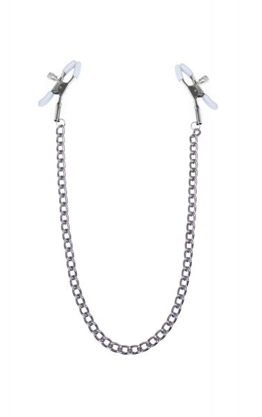 Классические зажимы для сосков, соединенные цепочкой, позволяет создать нужный уровень давления на сосок, а также — играть, потягивая за цепочку, давая ее в рот подопечной или прикрепляя к чему-то.