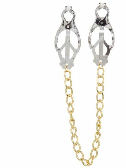 Металлические зажимы покрыты мягкими резиновыми прокладками, они идеально подходят для любителей и продвинутых пользователей в БДСМ-играх. Они заставят соски стоять прямо и ваш партнер не сможет отвести от вас взгляд. Зажимы сделают соски сексуальными, дерзкими и твердыми. Nipple play не только украсит грудь, а еще и превосходно простимулируют соски, делая их более чувствительными. Японский дизайн зажима может обеспечить высокий уровень боли и обычно используется только более опытными пользователями. Данная конструкция зажима обеспечивает увеличение натяжения при давлении на цепочку. Японский зажим или клеверный одн из самых любимых и популярных зажимов среди любителей БДСМ игр.