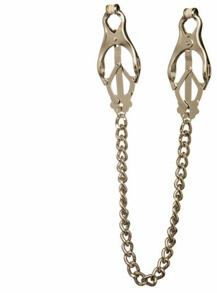 Металлические зажимы покрыты мягкими резиновыми прокладками, они идеально подходят для любителей и продвинутых пользователей в БДСМ-играх. Они заставят соски стоять прямо и ваш партнер не сможет отвести от вас взгляд. Зажимы сделают соски сексуальными, дерзкими и твердыми. Nipple play не только украсит грудь, а еще и превосходно простимулируют соски, делая их более чувствительными. Японский дизайн зажима может обеспечить высокий уровень боли и обычно используется только более опытными пользователями. Данная конструкция зажима обеспечивает увеличение натяжения при давлении на цепочку. Японский зажим или клеверный одн из самых любимых и популярных зажимов среди любителей БДСМ игр.