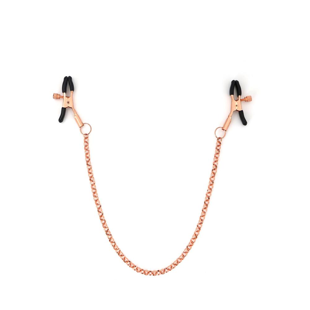 8. Зажимы на цепочке для сосков. Зажимы завинчиваются, чтобы отрегулировать силу сжатия. Силиконовые накладки позволяют не повредить сосок даже при очень сильном воздействии! Цепочка не просто шикарно выглядит, но и дает возможность дополнительно поиграть с ощущениями: легко потяните за цепочку, чтобы впечатления от зажимов стали более яркими. Общая длина (зажимы + цепочка): 48 см.